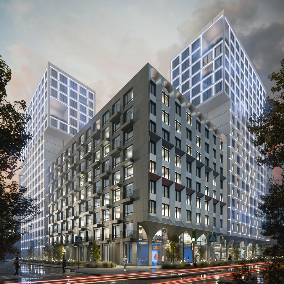 жилой квартал МАТРИЦА Первый проект комплексного развития территорий в г. Самара на 4,8 га Архитектура: Концептуальный стиль с навесными фасадными решениями из керамогранита, аквапанелей и кассет из алюминиевого композита Широкоформатное остекление Дизайнерская подсветка фасадов Социальный кластер: Новая школа на 300 мест Десткий сад на 155 мест Поликлинника на 100 посещений в сутки Инфраструктура: Собственный парк с плейхабами Закрытый двор без машин Двухуровневый подземный паркинг с доступом к квартире и электроазарядками Келлеры Уникальные планировочные решения: Квартиры с террасами и видом на Волгу Двухуровневые квартиры с видом на Волгу Квартиры с террасами на первых этажах во двор Кухни-гостинные, мастер-спальни с гардеробными Более 40 вариантов планировок
