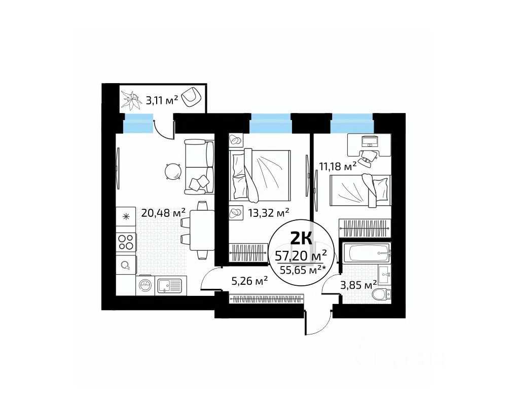 57 м² · Этаж 9 из 18