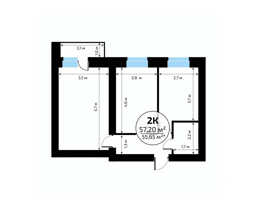 57 м² · Этаж 12 из 18