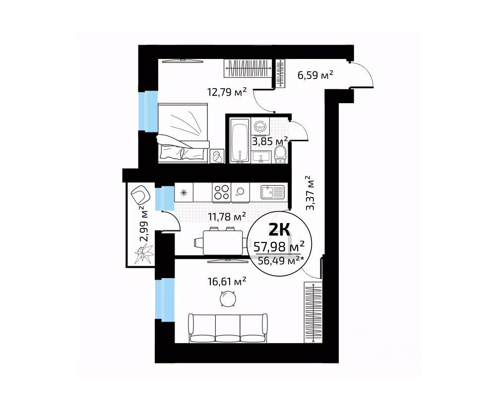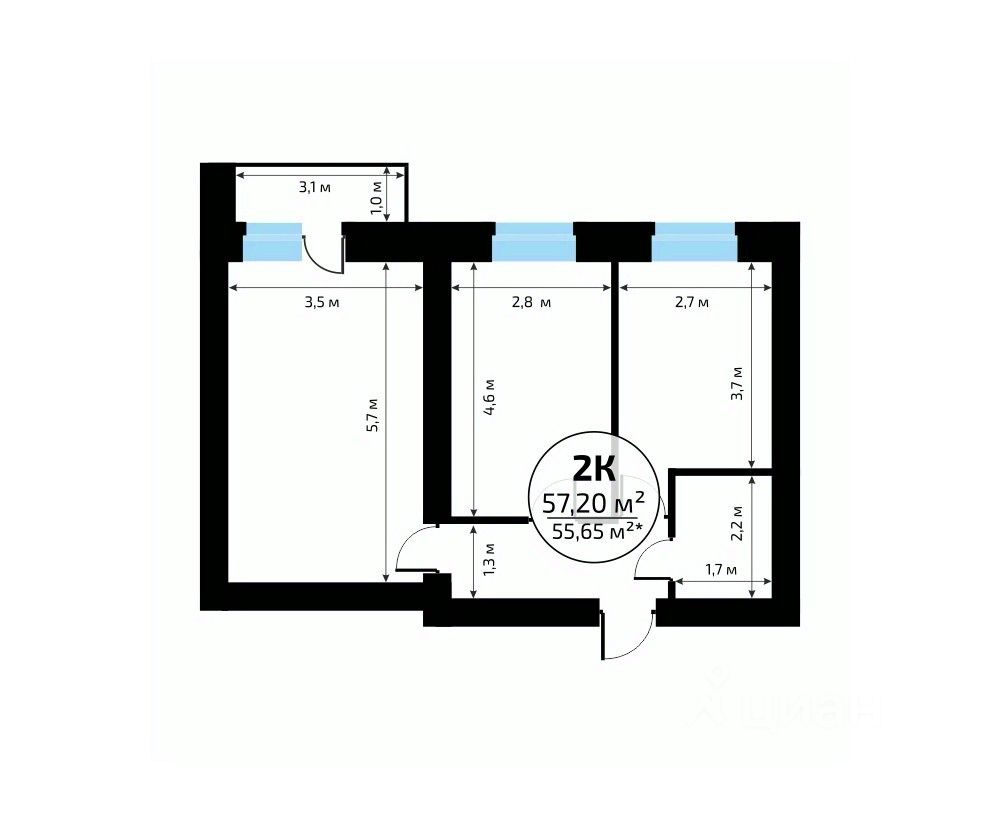 57 м² · Этаж 6 из 18