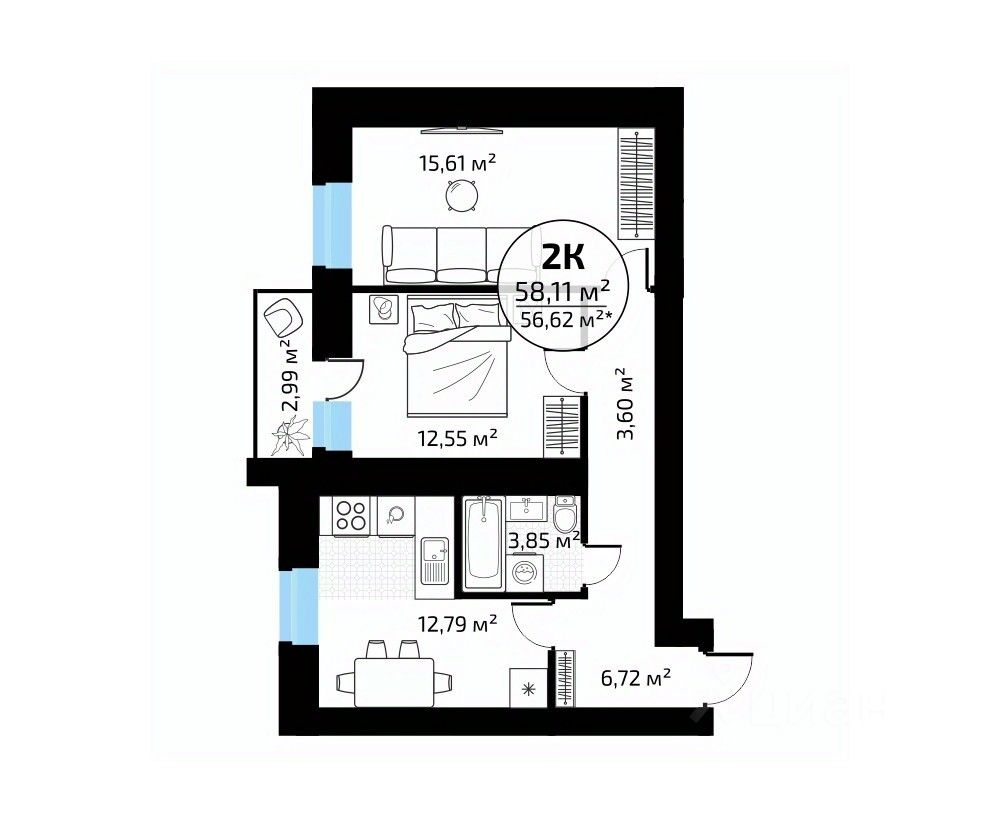 58 м² · Этаж 4 из 18