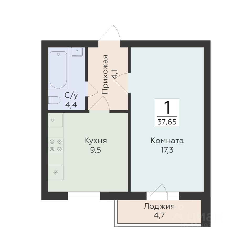 37 м² · Этаж 14 из 17