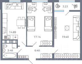 Просторная двухкомнатная квартира евроформата идеально подойдет для семей. Две спальни предоставляют возможность гибкой организации пространства: одна из них превосходно подойдет для полноценной спальни, в то время как меньшую по размеру можно адаптировать под детскую комнату или личный кабинет. Просторная кухня-гостиная имеет выход на лоджию с панорамным остеклением, откуда открывается прекрасный вид на город. Её можно использовать как рабочий уголок, небольшой домашний сад или место для отдыха с чашкой утреннего кофе. Просторный совмещенный санузел позволяет установить полноценную ванну и стиральную машину, а в прихожей предусмотрено место для организации зоны хранения.