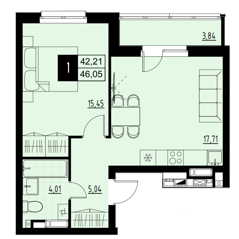 Продуманная однокомнатная квартира с просторной кухней-гостиной, лоджией и видом во двор без машин. Оптимальная планировка, место под стиральную машину и уютная спальня с возможностью зонирования под детскую. Умная планировка однокомнатной квартиры 46,05 м² в АМГРАДЕ продумана до мелочей: многофункциональная кухня-гостиная 17,71 м² объединяет обеденную зону, зону отдыха и зону готовки, и остаётся место для обустройства рабочего уголка. Из кухни есть выход на глубокую лоджию, где можно обустроить дополнительную зону хранения. Просторная спальня 15,45 м² позволяет разместить большую кровать, прикроватные тумбочки и небольшую кроватку для малыша. Практичность: в совмещённом санузле 4,01 м² есть место под стиральную машину, удобную ванну и хранение бытовых мелочей. Преимущества: вид из окон во двор без машин, современный район с развитой инфраструктурой, колясочные и кладовые в доме. Локация: Рядом с ТК АМБАР и остановки общественного транспорта. Готовы посмотреть квартиру? Тогда звоните!