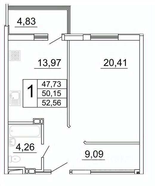 52 м² · Этаж 16 из 27