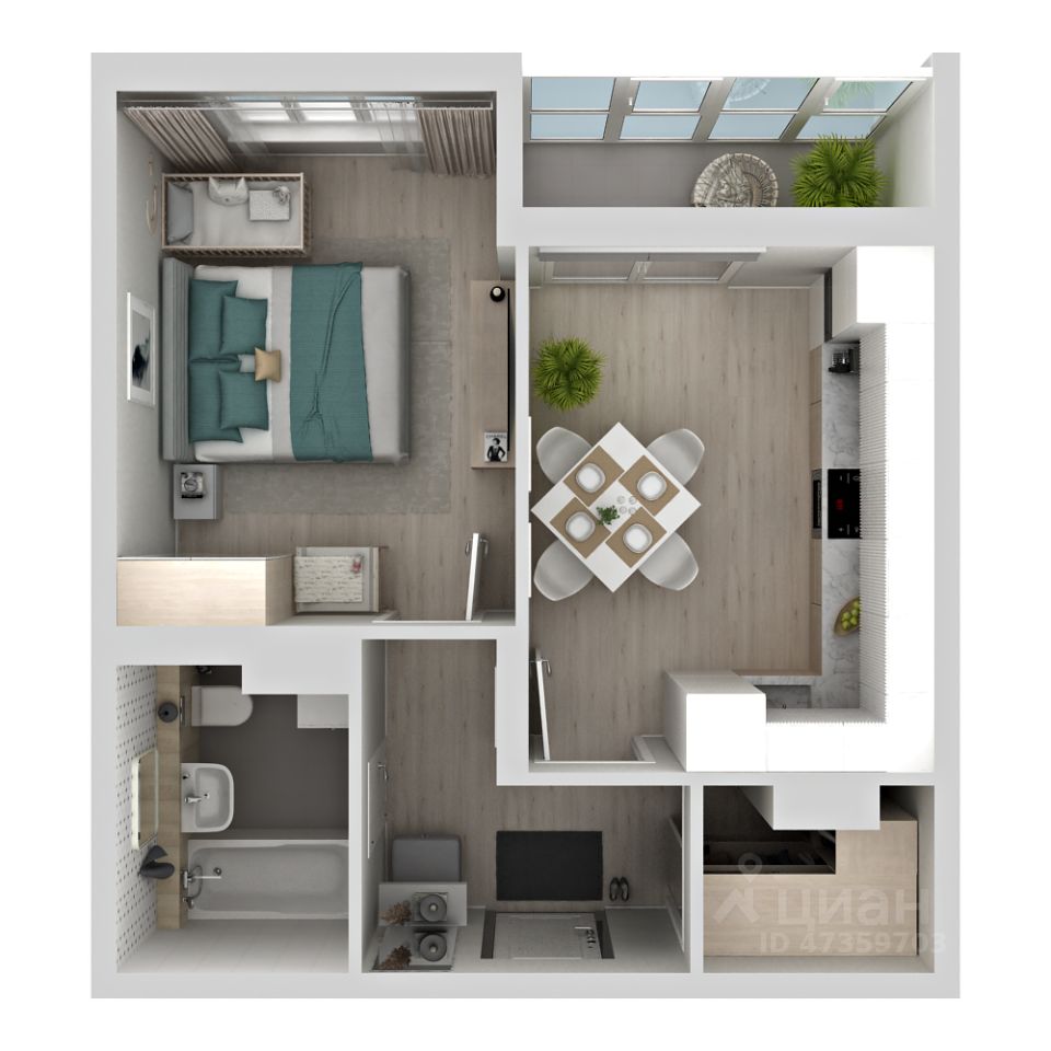 Компактная квартира-студия — это пространство продуманной планировки с грамотным зонированием. В студии прекрасно сочетаются места для отдыха, работы и организации вместительной встроенной системы хранения в прихожей. Окна выходят на уютный двор, открывая прекрасный вид на благоустроенную территорию. Просторный совмещенный санузел позволяет разместить не только полноценную ванну, стиральную машину, а также модули для хранения. Отсутствие лоджии компенсируется дополнительными квадратными метрами, которые можно использовать как для хранения вещей, так и для организации места отдыха. На компактной площади разместится все, что нужно для комфортной жизни.