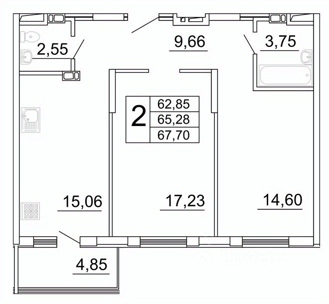 54 м² · Этаж 15 из 17