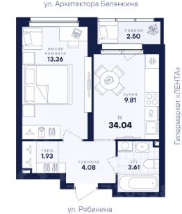 1-к, Рябинина, 1 Показать на карте
