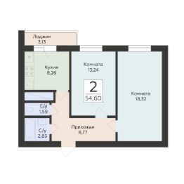 54 м2