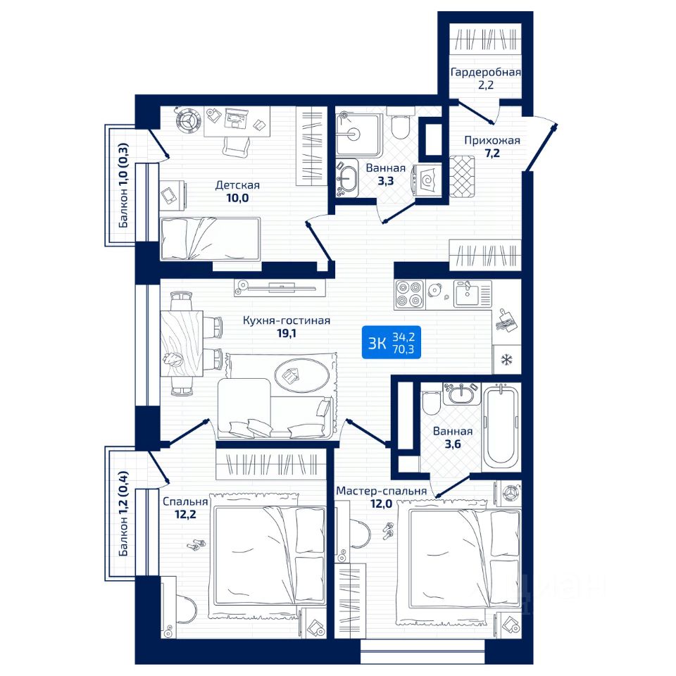 70 м² · Этаж 8 из 19