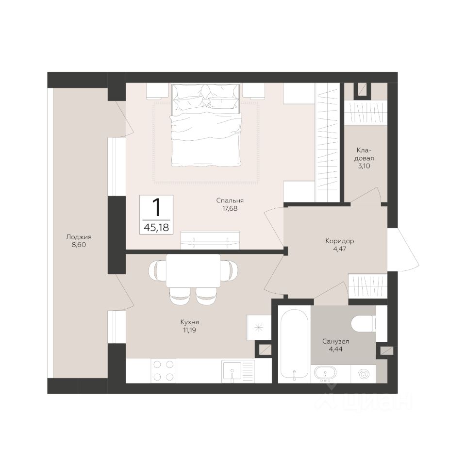 45 м² · Этаж 2 из 18