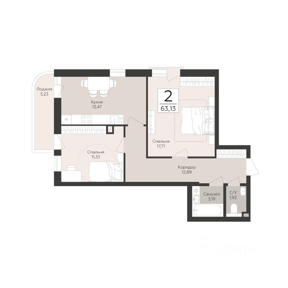63 м² · Этаж 2 из 18