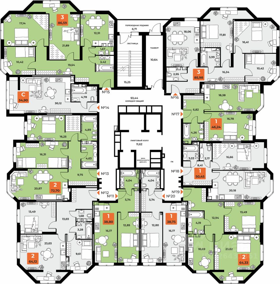 69 м² · Этаж 21 из 25