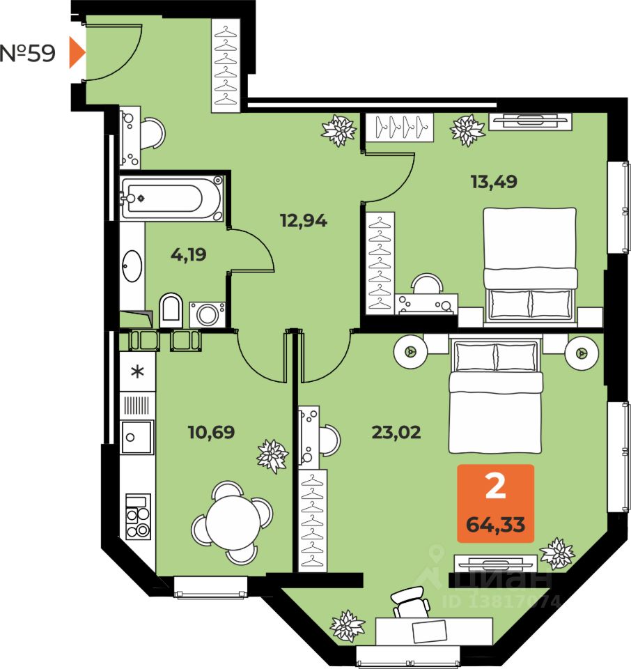 63 м² · Этаж 7 из 23