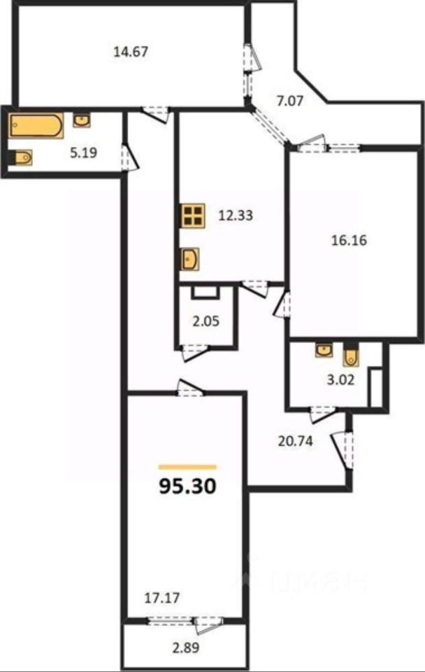 95 м² · Этаж 4 из 25