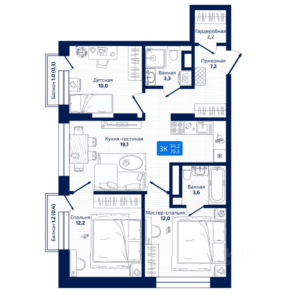 70 м² · Этаж 6 из 19