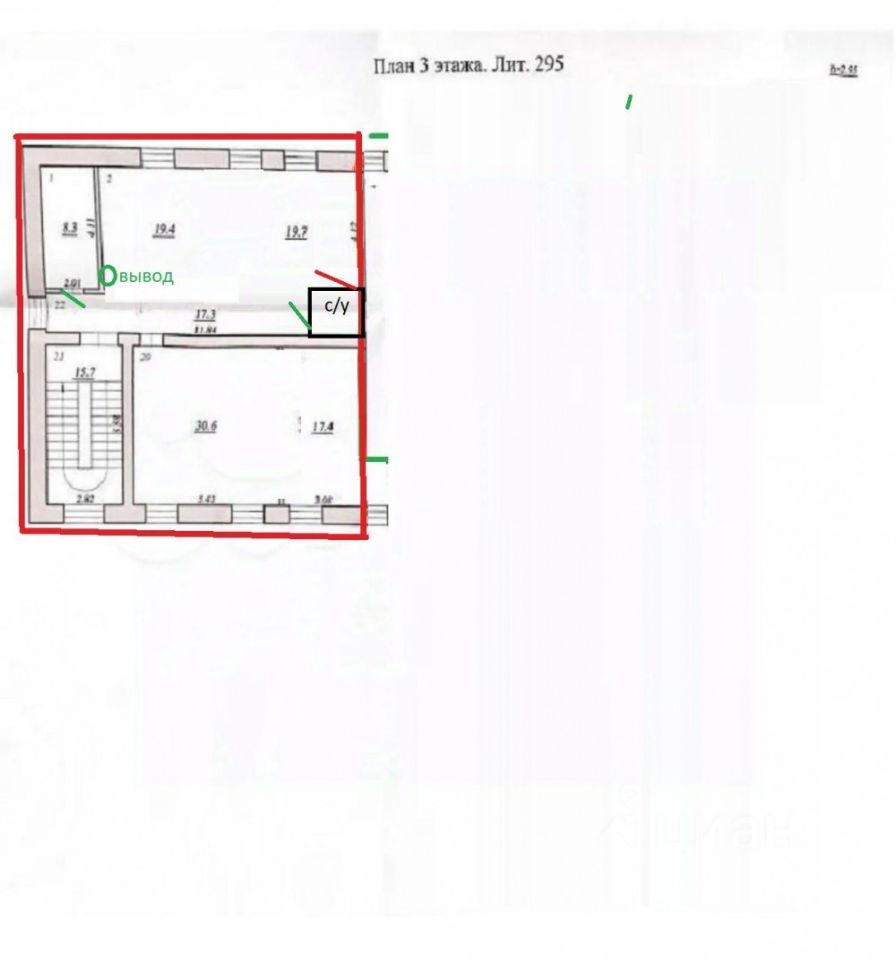 Помещение в аренду Сдаю помещение свободного назначения расположенное на третьем этаже 3-х этажного отдельно стоящего здания. - Первая линия. - Площадь 112,7 м. кв. - Отдельный вход. - Высота потолков 3м. - 40 квт, возможно увеличение, 220 и 380 ВТ. - Центральное отопление. - Горячая, холодная вода. - Центральные коммуникации. - Свой санузел. - Установлена вентиляция. - Пожарная сигнализация Аренда + к/у Елена Т. Добавьте это объявление в ''избранное'' - чтобы не потерять.