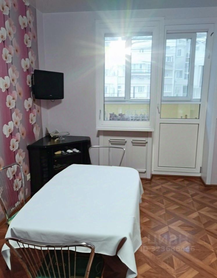 Сдаётся квартира на длительный срок. В квартире выполнен косметический ремонт. Обстановка включает необходимую мебель как на кухне, так и в комнате. Из техники есть кондиционер, холодильник, телевизор и стиральная машина. Санузел совмещенный, в наличии ванна. Из окон открывается вид на улицу, а также имеется одна лоджия.