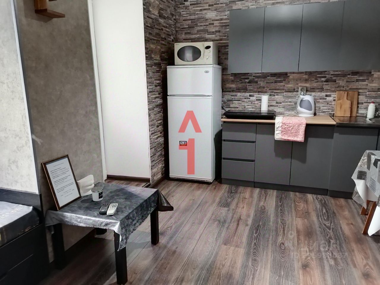 Чистая уютная студия со всем необходимым для проживания. Дом новый со свежим ремонтом, находится под видеонаблюдением. Ухоженная территория с зелёными наслаждениями. Уже сейчас поют соловьи. Во дворе огороженная детская площадка. Вежливые приветливые соседи.