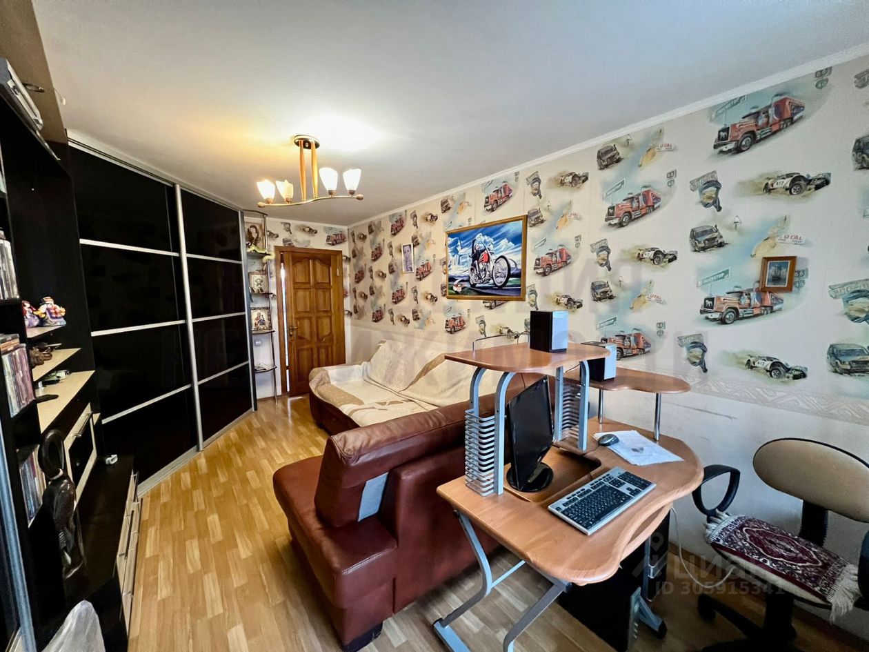 Квартира находится на 4 этаже 5 этажного жилого дома и представляет собой: *Просторная прихожая *Гостинная 35.2кв.м, *Спальная 16.5кв.м, *Детская комната 12.0кв.м, *Кухня 6.5кв.м, *Ванная комната и С/у 3.3кв.м, *Застекленный балкон 2.7кв.м В квартире выполнен косметический ремонт, на стенах обои, в спальной и детской комнате на полу постелен линолеум, в остальных помещения уложена керамическая плитка. Установлены дорогие стеклопакеты, сплит система. Остается встроенная мебель.