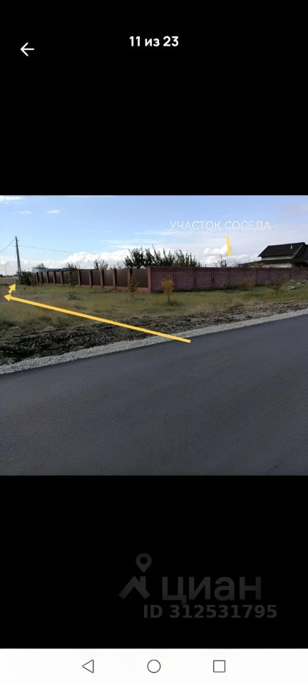 6) Участок с одной стороны имеет ограждение (соседский забор). На фото указан угловой дом соседа, за ним мой участок. Соседи только по бокам, так как позади участка пожарный проезд.