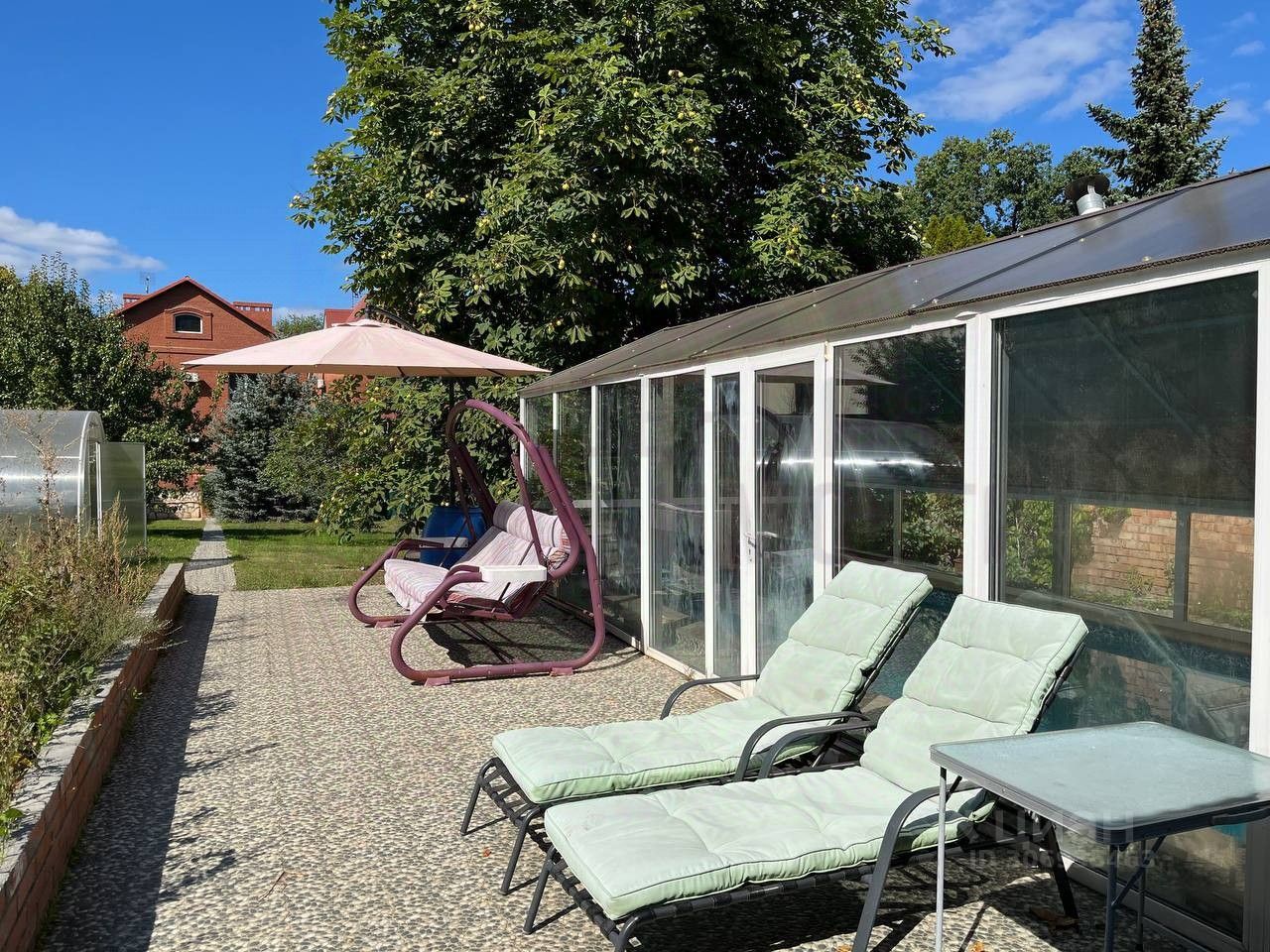 1 Этаж - Прихожая, холл, гостиная, кухня, столовая, гардероб, санузел. 2 Этаж - Гостиная, холл, 5 комнат, санузел Банный комплекс - прихожая, комната отдыха, санузел с ванной, сауна (Баня на дровах), бассейн Участок - Гараж, отмостка, дорожка к банному комплекса, каштан, сливы, яблоня, теплица.