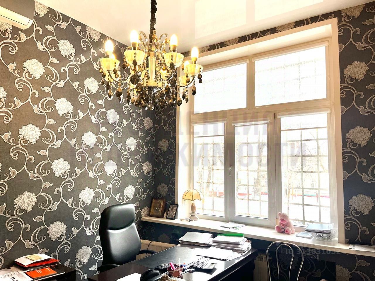 Площадь помещения 148 кв м. Помещение занимает часть первого этажа- 35 кв м и цокольный этаж -113 кв м. На первом этаже кабинет, кладовая, санузел. В цоколе 5 комнат. Пол-керамогранит Потолки-армстронг, в кабинете-натяжные. Стены в кабинете -обои, в остальных комнатах стеновые панели. Выделенная мощность 15 кВт. Вход в помещение со двора.