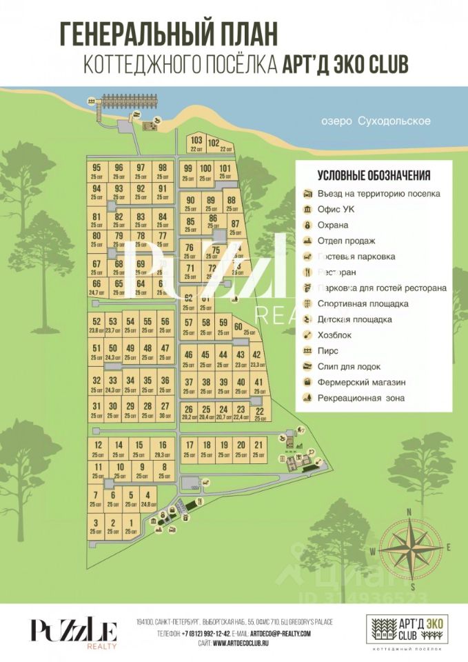 Лот Z750 Участок 17 Продается участок площадью 25 соток в престижном коттеджном поселке ''Арт''Д ЭКО Club'', расположенном на первой береговой линии живописного Суходольского озера.