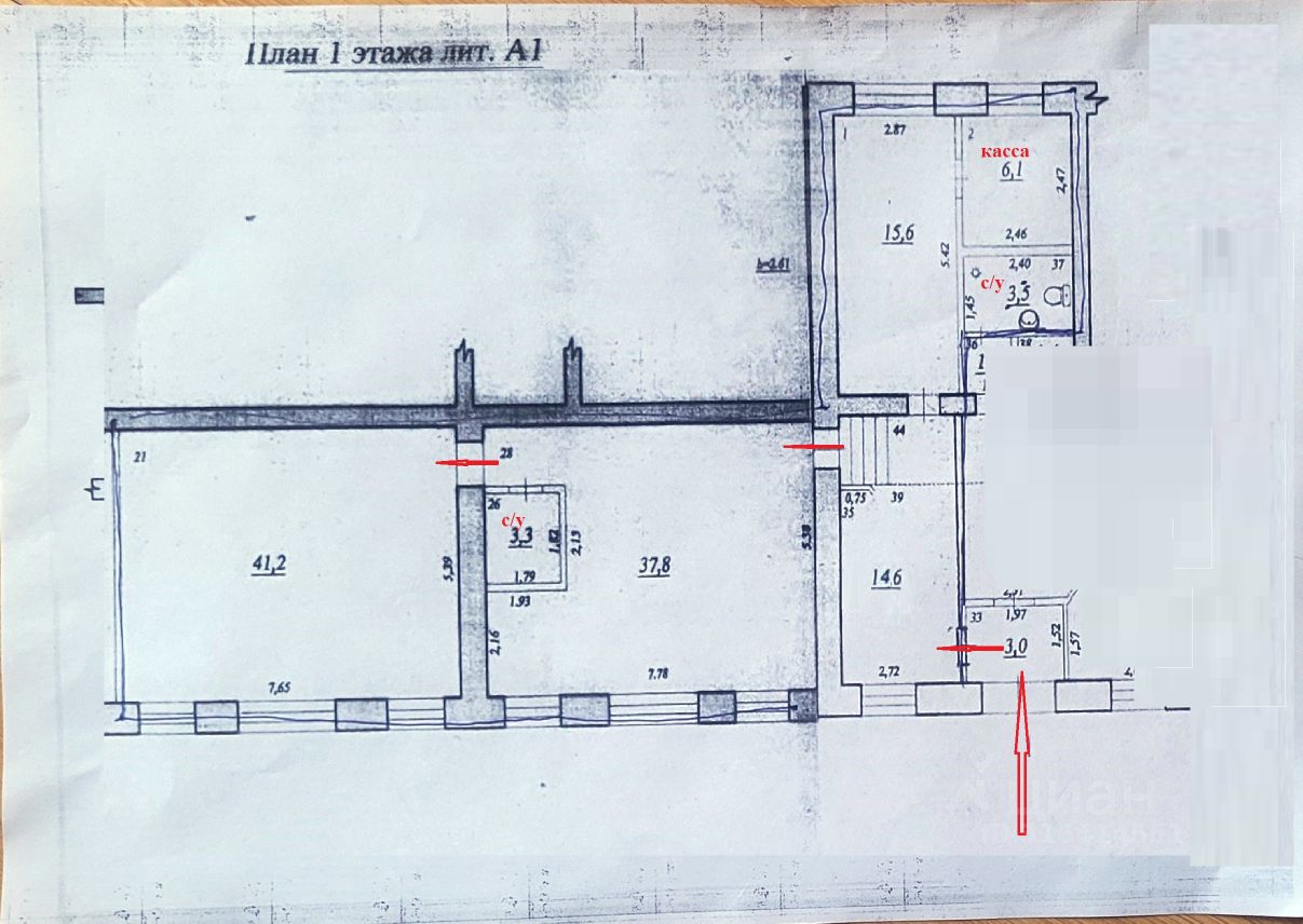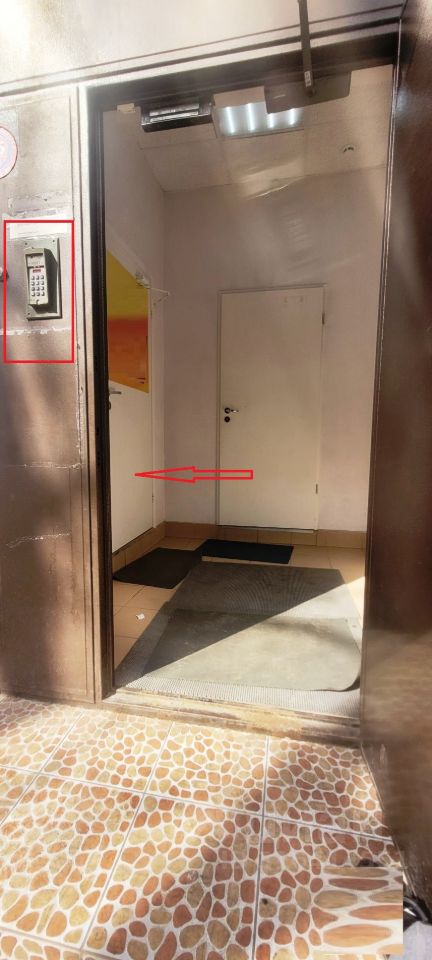 Общее крыльцо. Отдельный вход. Домомфон. От входа место под рецепшн и Прямо кабинет 15.6 кв.м. с санузлом и кассой (сейчас используется в качестве кладовки) - налево 3 ступеньки и 2 последовательно расположенных комнаты 38 кв.м. и 41 кв.м. и второй санузел.