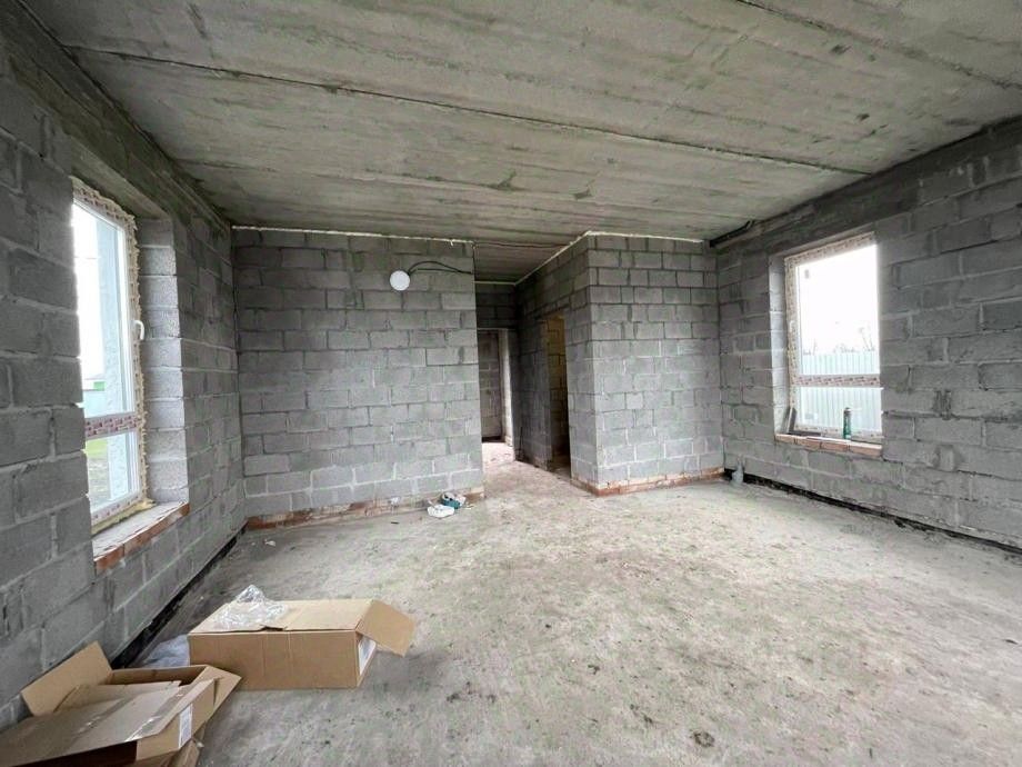 Дом в КП Бавария-Парк по цене квартиры. 2-этажный Дом 90 м2 в черновой отделке на земельном участке 6 соток. Материал стен — керамзитоблоки. Скважина для воды, канализационный септик КИБЕЗ. Забор из профлиста. Электричество заведено в дом. Газ по границе участка.