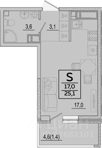 Общая площадь25,1 м2
