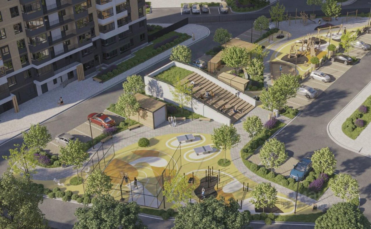 Территория комплекса закрытая, на ней ведется видеонаблюдение. Во дворах спроектированы современные детские и спортивные площадки, расположены зоны отдыха, выполнено озеленение. Для активного вида отдыха предусмотрена Workout зона и тренажеры на площадках. Для автовладельцев продуман подземный паркинг.