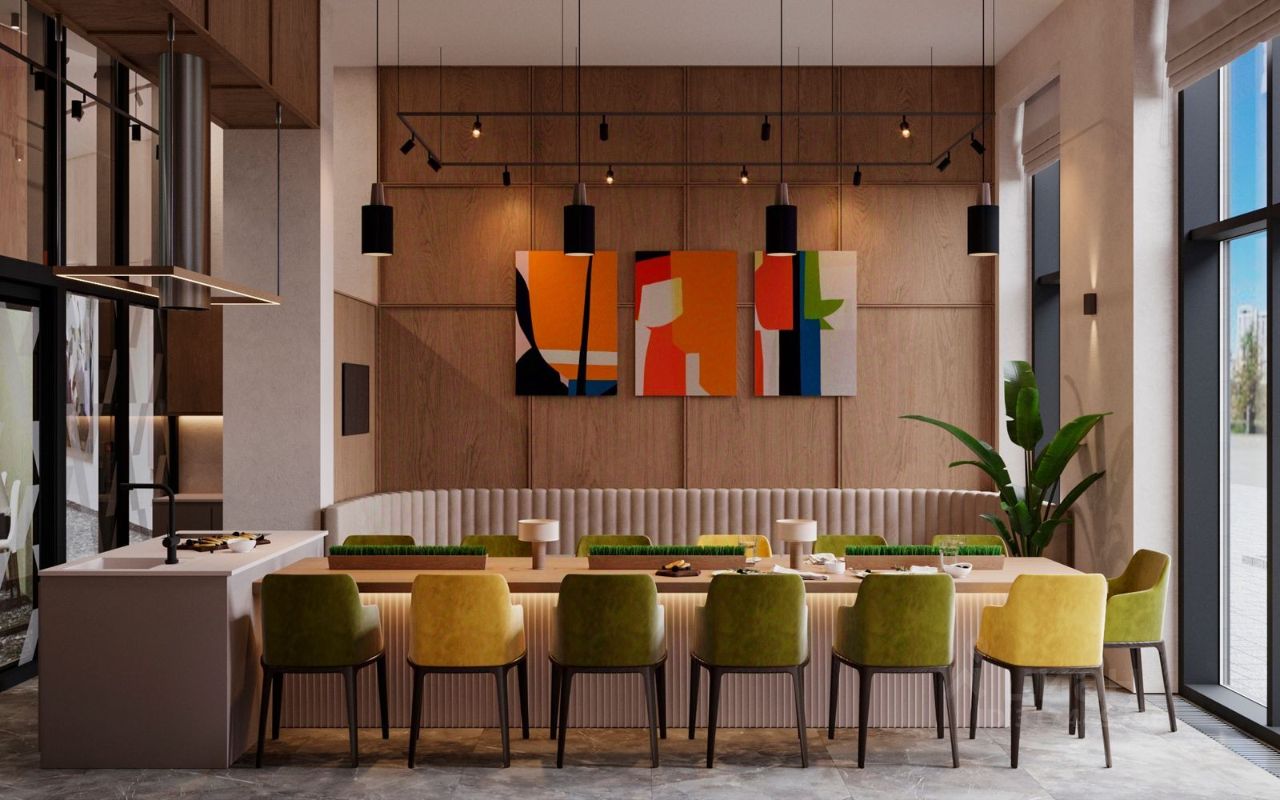 Домашний офис позволит комфортно и продуктивно работать, не покидая пределов дома. Вам больше не нужно никуда ехать, чтобы распечатать документы. Провести деловую встречу или собрание можно в специально оборудованных переговорных комнатах для разного количества человек. Для on-line формата встреч или быстрого поиска нужной информации есть высокоскоростной wi-fi. Соседский досуговый центр Зона дружеского общения и релакса позволит собираться с соседями. Вы можете поиграть в настольные игры, отмечать общие праздники с большим пирогом и закусками или собраться на просмотр спортивных матчей. Места хватит всем. Детская игровая: Хотите, чтобы дети оторвались от гаджетов? Мы продумали безопасную, продвинутую детскую игровую для разных возрастов.