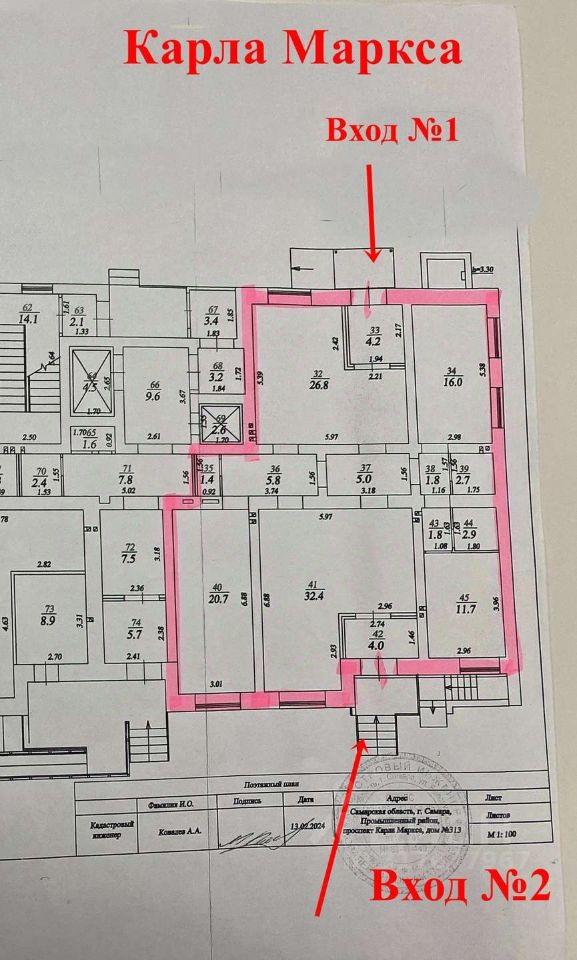 Помещение в черновой отделке: выполнена стяжка пола, штукатурка стен, заведена электрика, установлены приборы учета. Высота потолка 3,3 м. Две раздельные входные группы: со стороны Карла Маркса и со стороны частного сектора. На фасаде дома есть место под размещение вывесок и рекламы.