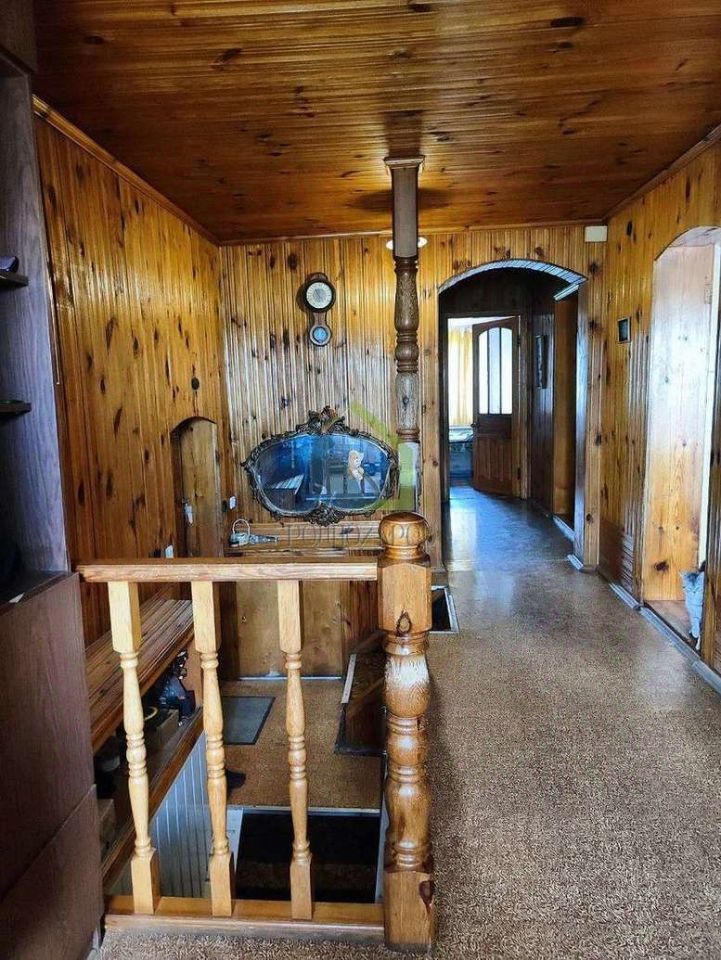 Крытый двор. 2 гаража со смотровой ямой. Имеется мастерская с верстаком и несколько подсобных помещений. Имеется погреб для хранения продуктов. Во дворе есть баня, которая оборудована зоной отдыха и камином. Вода в баню проведена. Кроме того, на территории имеется бассейн и другие надворные постройки, которые могут быть использованы для различных нужд. В самом доме расположены 4 комнаты, 2 санузла и 2 кухни. Высокие потолки создают ощущение простора и комфорта. Есть отдельный вход на второй этаж. Все коммуникации имеются - газ, вода, канализация, в доме так же есть wi-fi. Документы на дом полностью чистые, без обременений.
