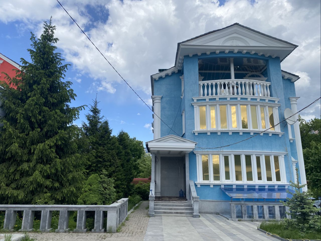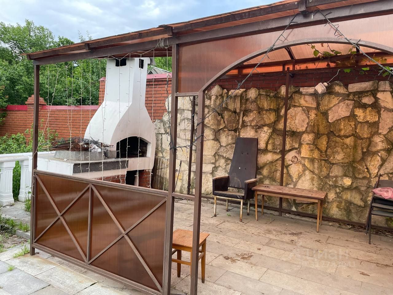 Благоустроенный просторный двор, выложенный плиткой. На участке высажены декоративные, а также плодовые деревья и кустарники: ель, туя, кедр, яблоня, абрикос, персик, виноград, малина, смородина, крыжовник.