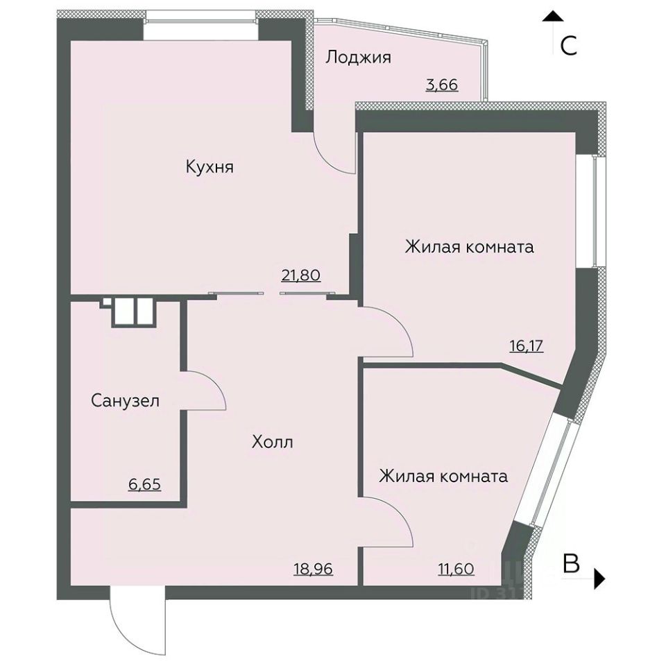Жилая комната 1 16,17 кв.м.
