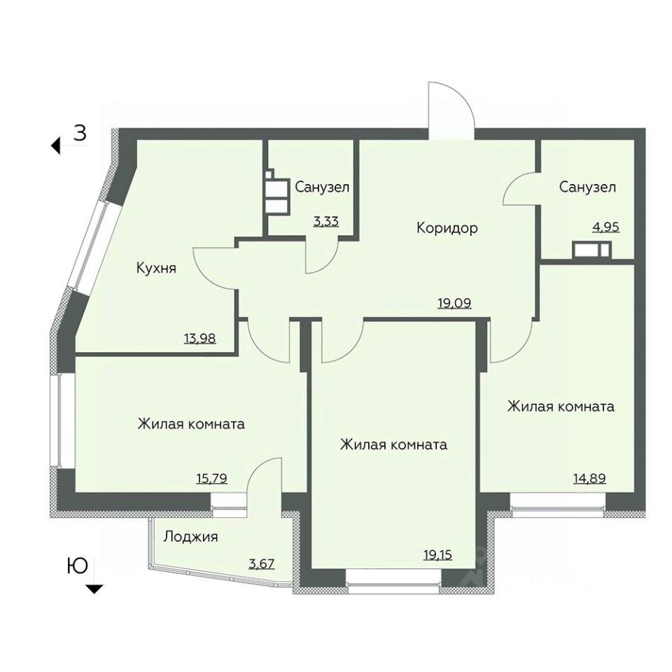 Жилая комната 3 14,89 кв.м.