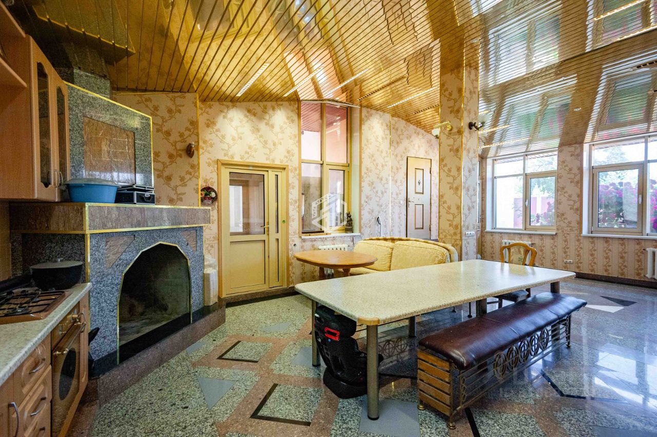 Соединяет два дома большой каминный зал с высокими потолками!