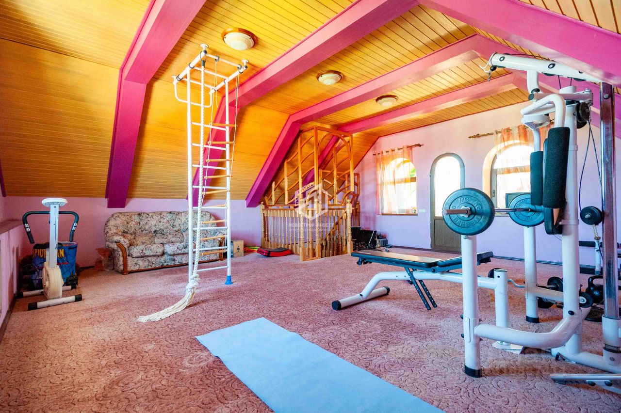 Во второй части дома: Цоколь: сауна и купель, холодильная комната для хранения запасов, 1 этаж: комната, постирочная, 2 этаж: две спальни, с/у, Мансарда. На придомовой территории расположена баня