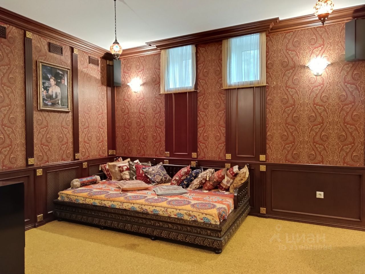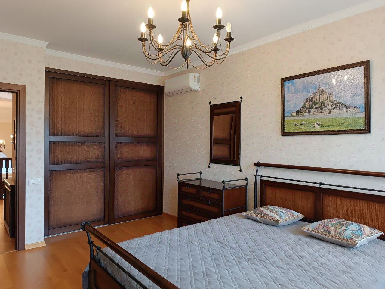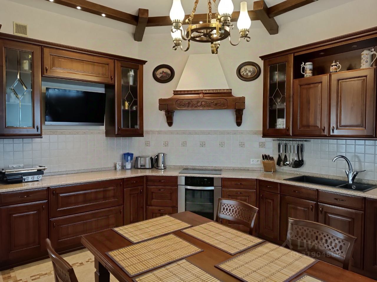 Оригинальный дизайн помещений, выдержанный стиль интерьера, тысяча продуманных мелочей, делающих проживание удобным и безопасным. Есть два гаража, площадка для четырех автомобилей гостей, автоматически закрывающиеся ворота.
