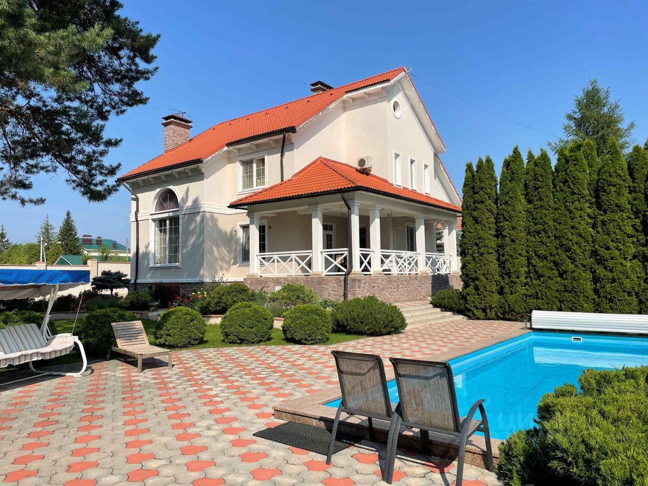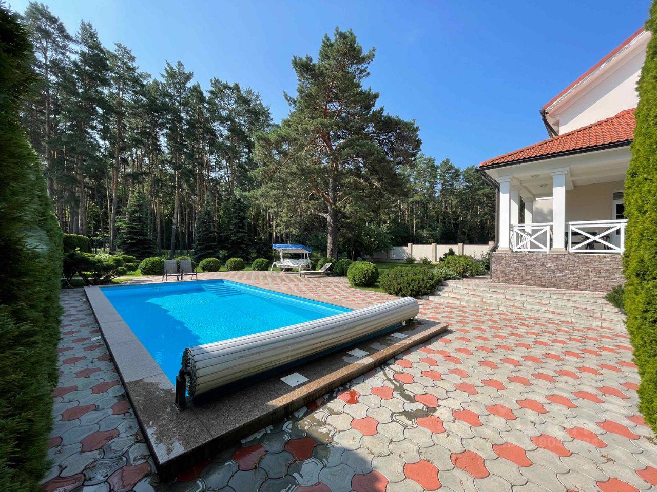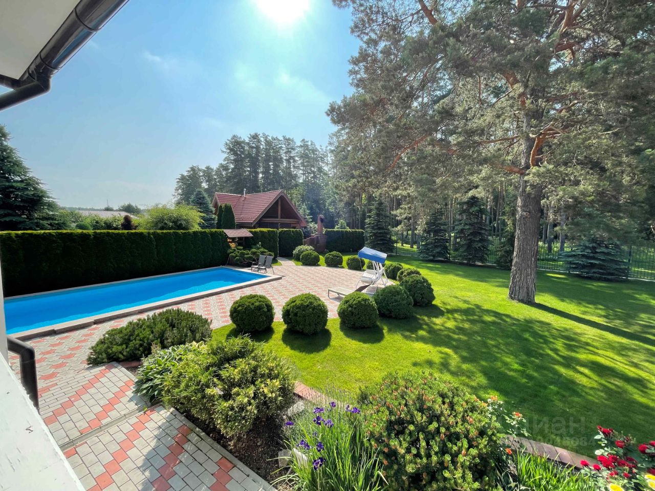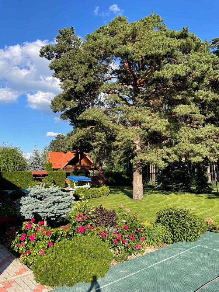 Село Зелёновка, Улица Южная, на границе соснового леса. На участке ландшафтный дизайн, много взрослых хвойных насаждений, газон с автополивом, цветники. Эксклюзив сада - раскидистая столетняя сосна. Имеется спортивная площадка, подогреваемый бассейн (9,5х4,5) с противотоком для плавания. С участка есть выход непосредственно на ухоженную опушку леса и тропинку для пробежек или прогулок.