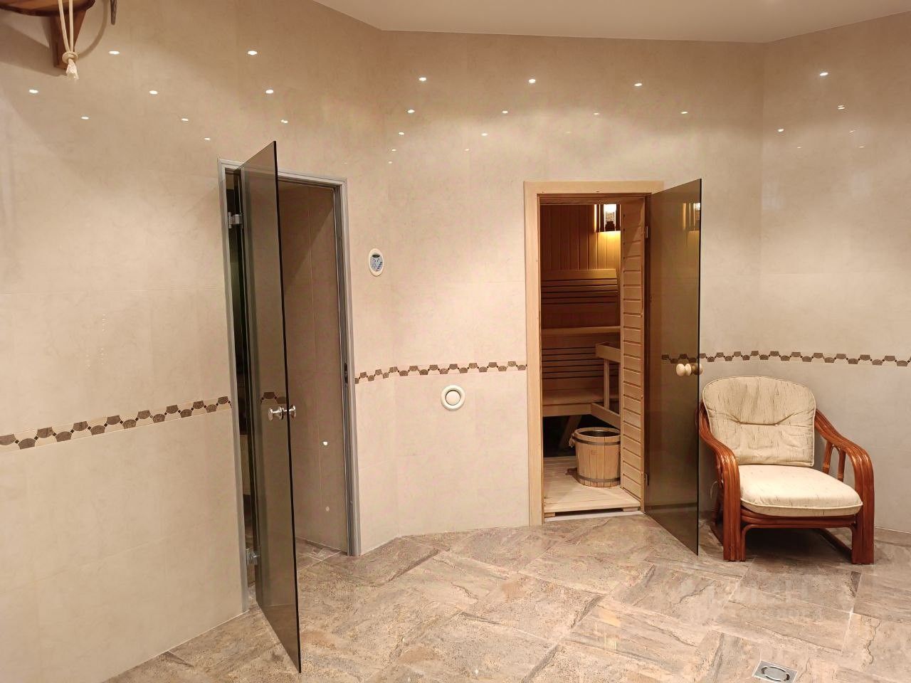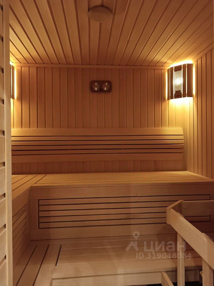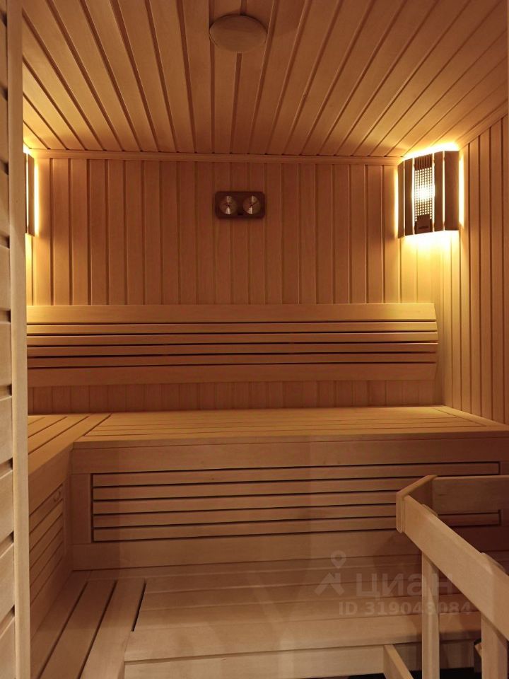 На втором этаже (89 кв.м.) три изолированные спальни, общий холл, два санузла. Основная спальня имеет собственный просторный санузел и вид на сосновый лес. В цокольном этаже (151 кв.м.) располагается зона отдыха: сауна, турецкая баня (хамам), тренажерный зал, бильярдная, а также котельная, кладовая и туалет.