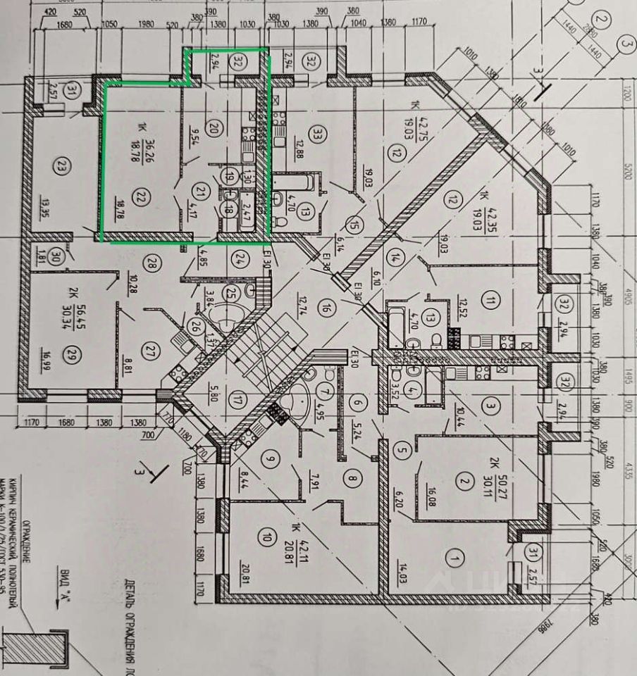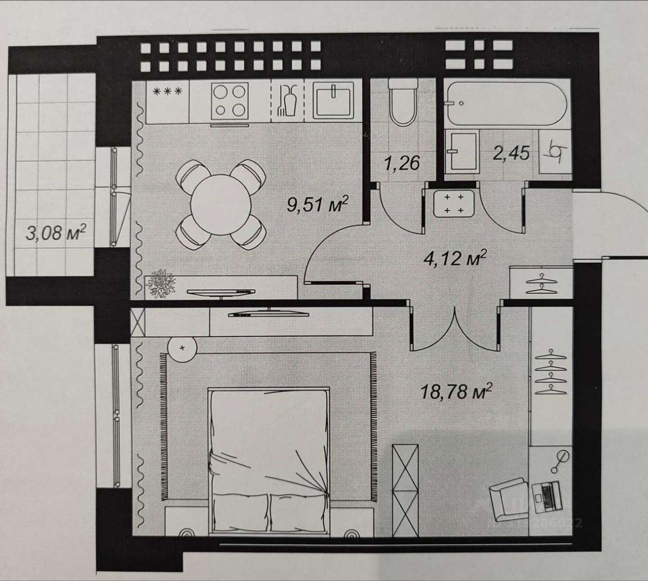 Черновая отделка. Комната 18,78 кв. м., кухня 9.56 кв. м., сан узел раздельный.