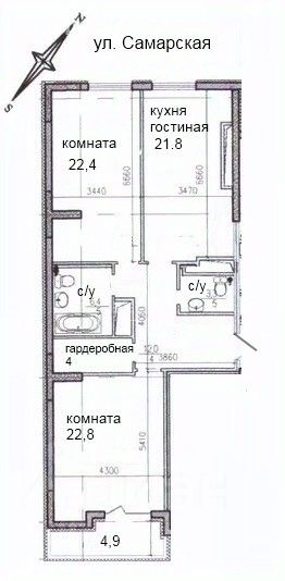 Площадь квартиры 92,9 кв.м, кухня 21,8 кв.м, жилая площадь 45,2 (более подробно на плане)