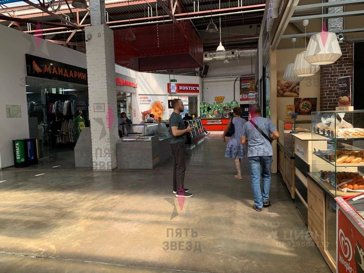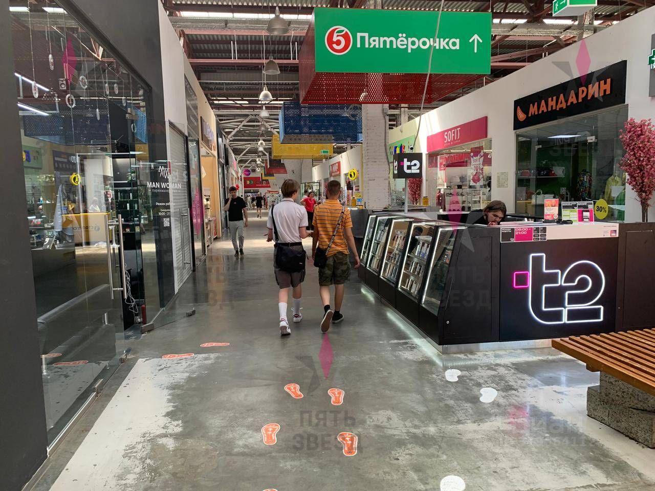 Проходное место между двумя федеральными супермаркетами. Очень высокий каждодневный пешеходный трафик.