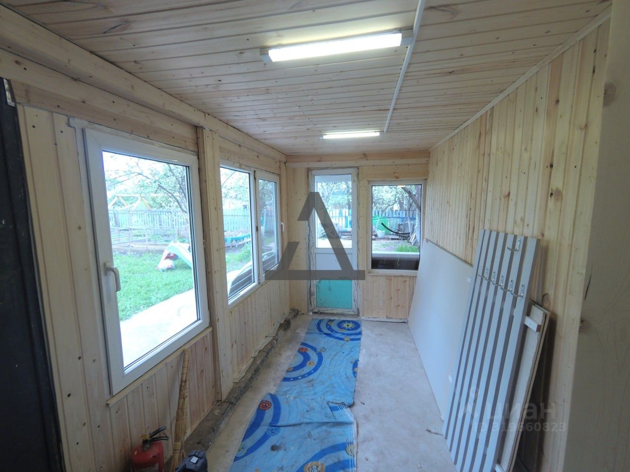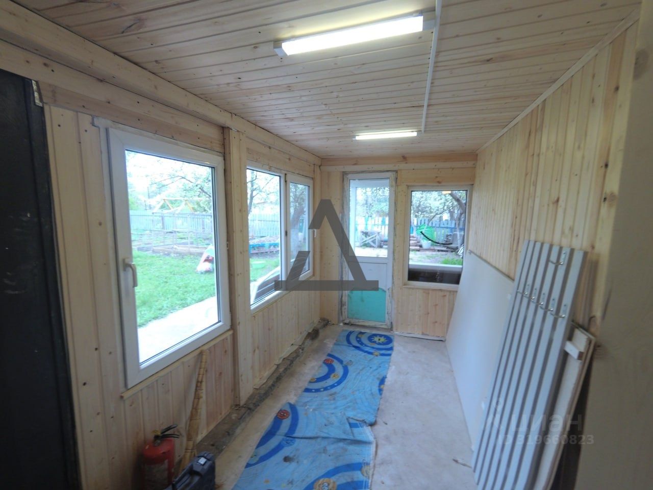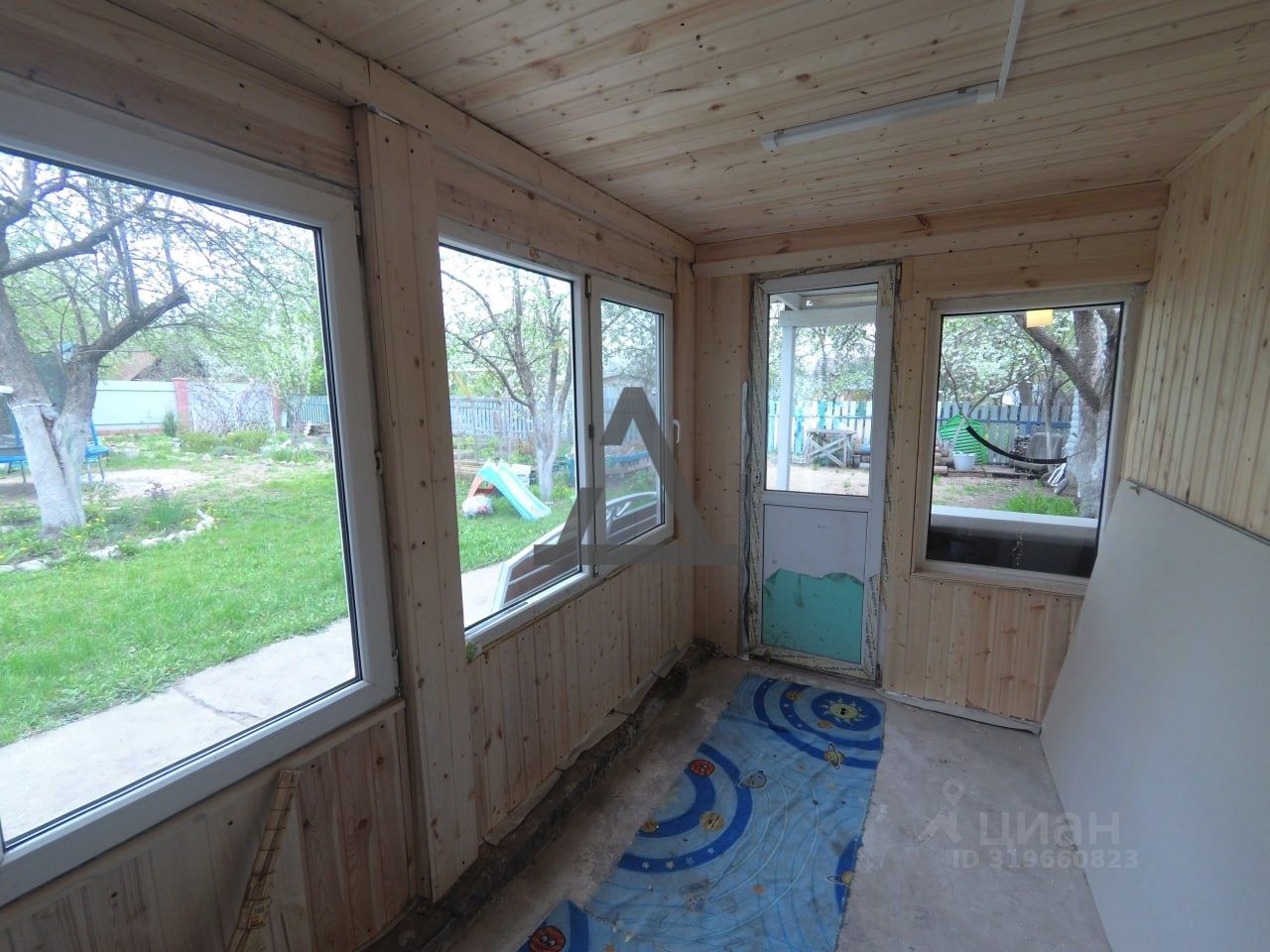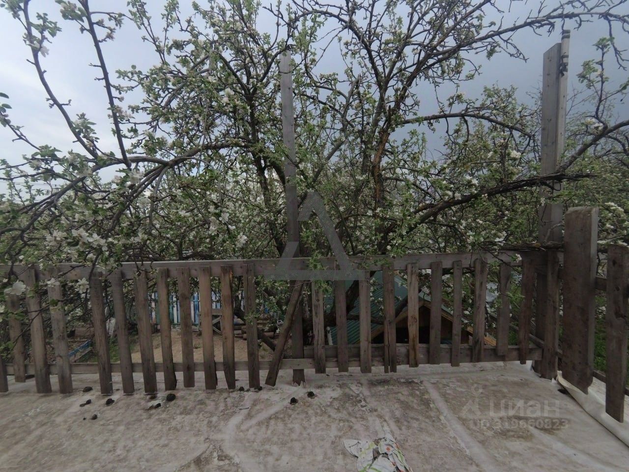 Есть открытая летняя веранда, в саду.