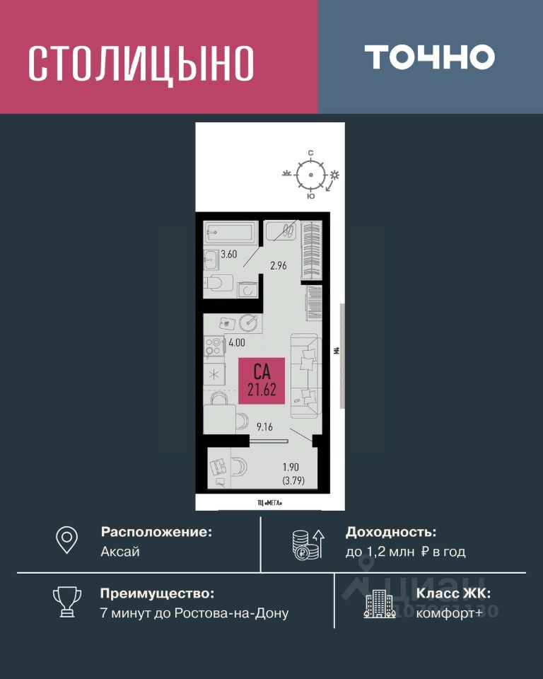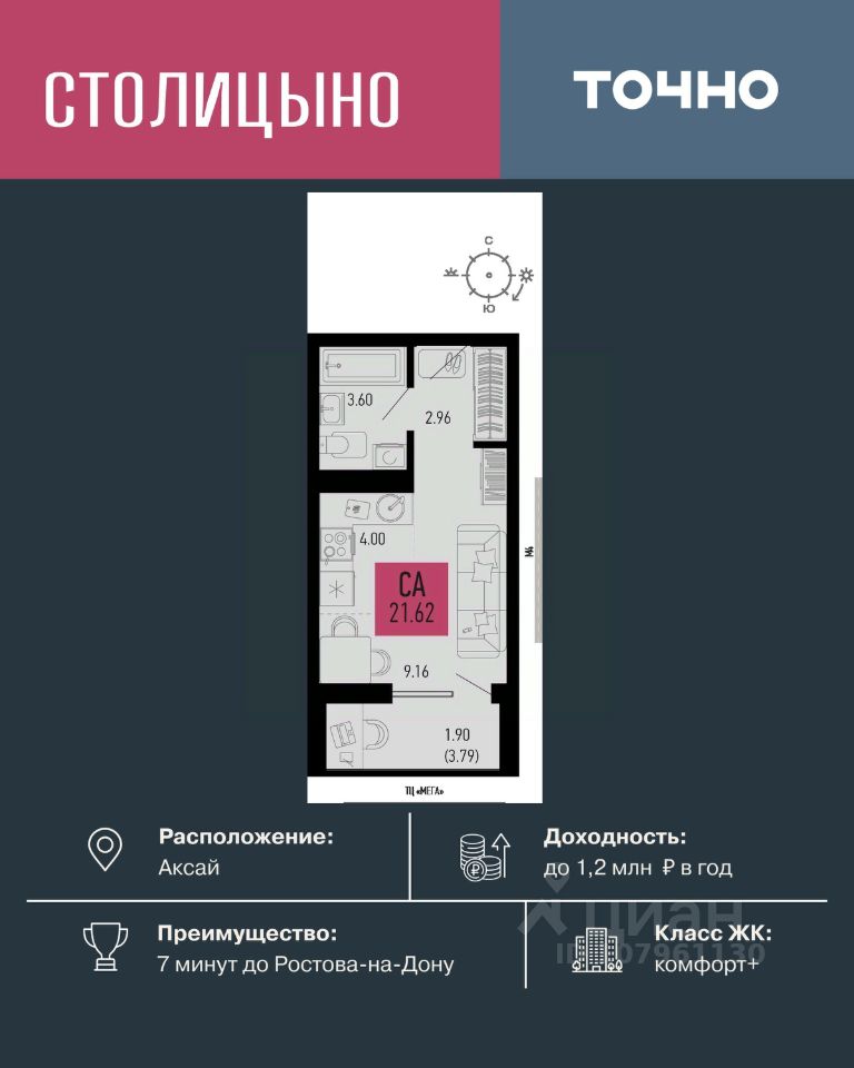 продам 1-к, Аксай3 783 500 ₽