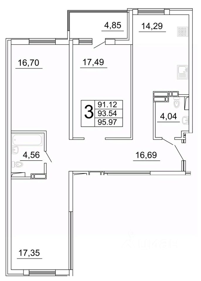 продам 3-к, Дыбенко, 513 360 000 ₽
