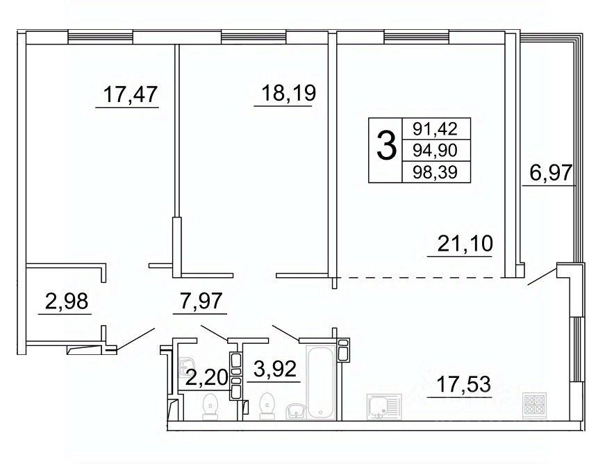 продам 3-к, Дыбенко, 513 640 000 ₽